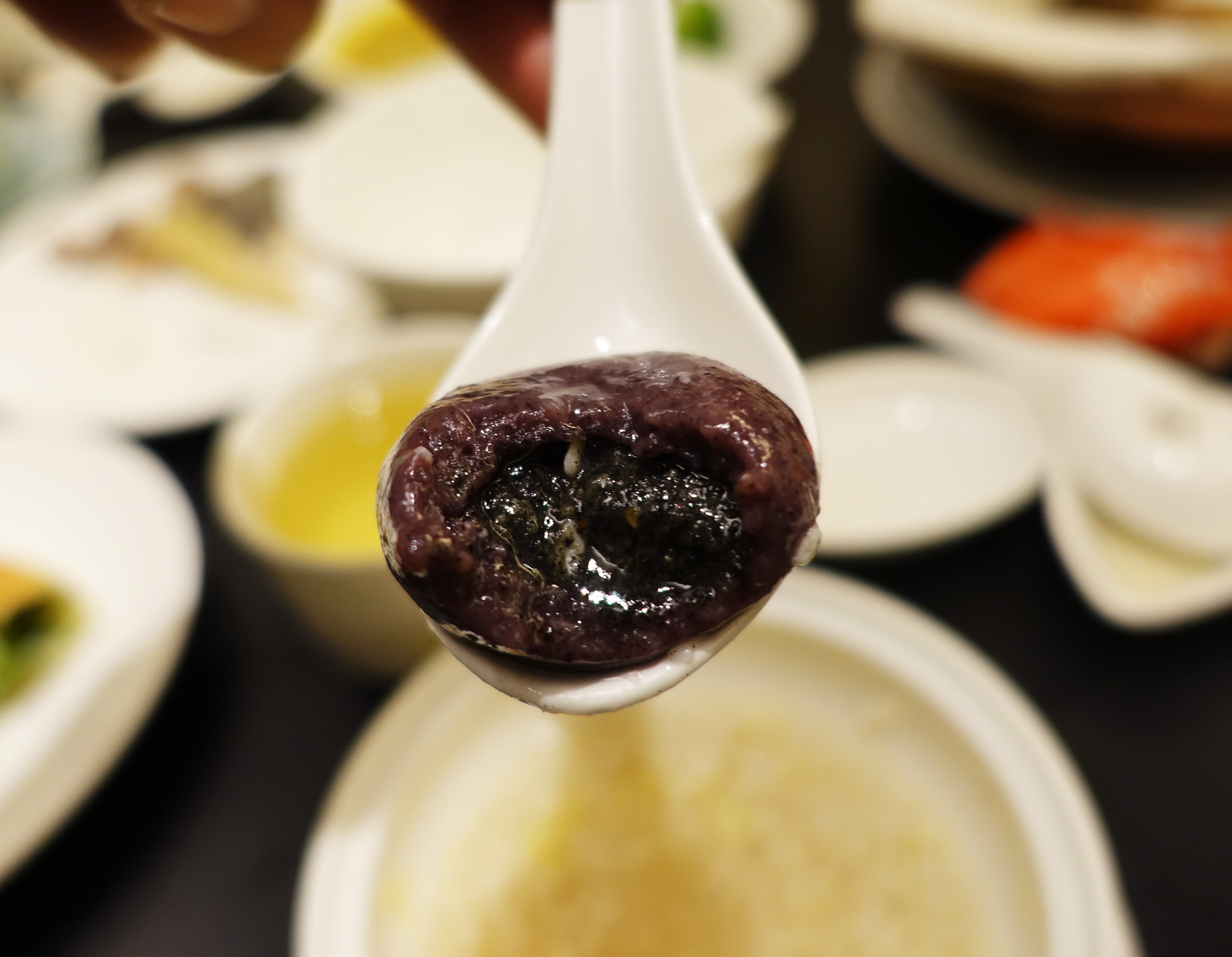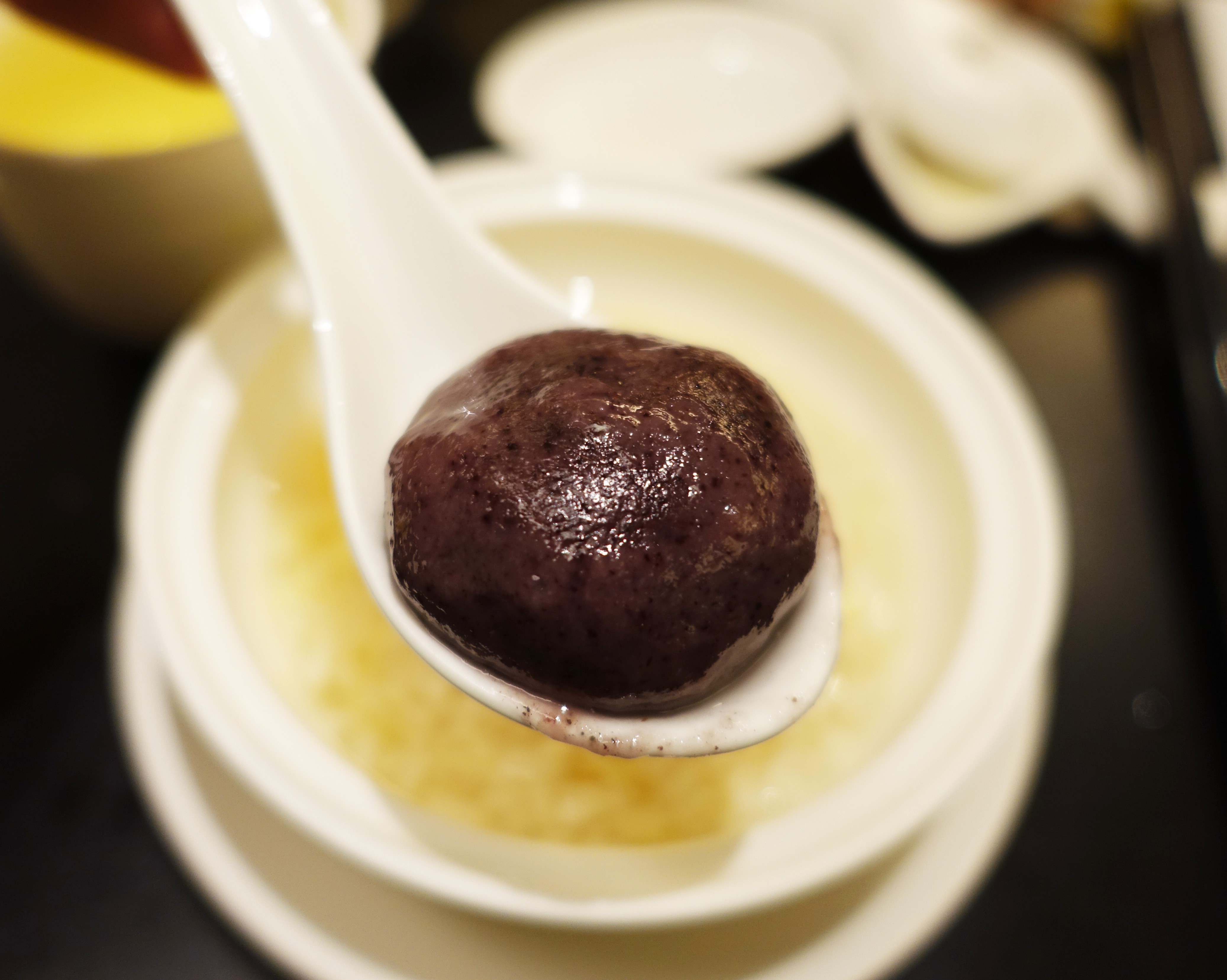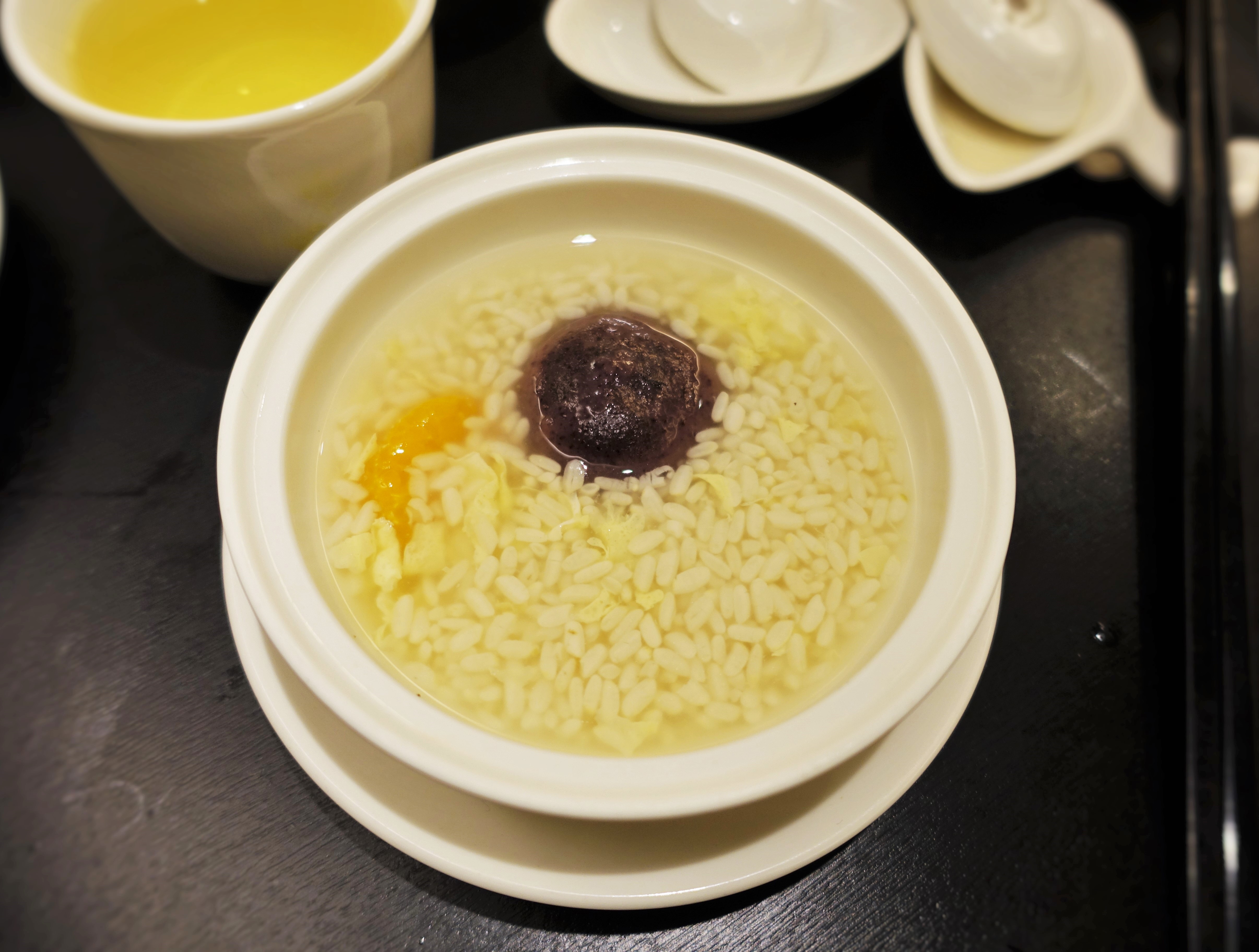 碗中滿滿的酒釀,紫米芝麻湯圓如眾星拱月點綴其中,對於能夠適應酒味的人,甜湯中酒味與甜味的比例其實恰到好處,一口微醺的甜味加上糯米的口感,帶點醉人的滋味。