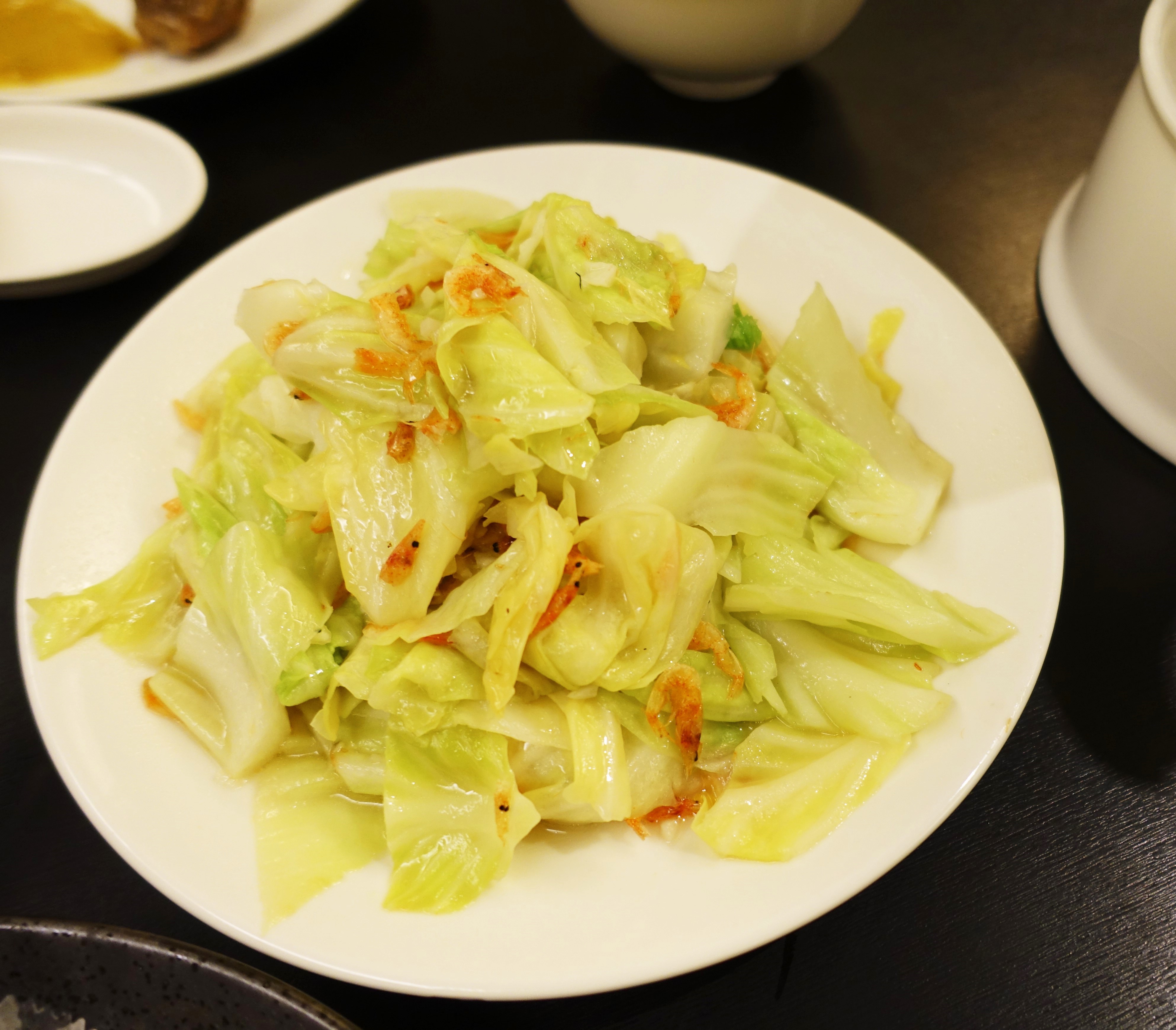 這道原本應該是櫻花蝦茼蒿菜,因為茼蒿菜已經完售,服務生詢問我們意見後,改為高麗菜。