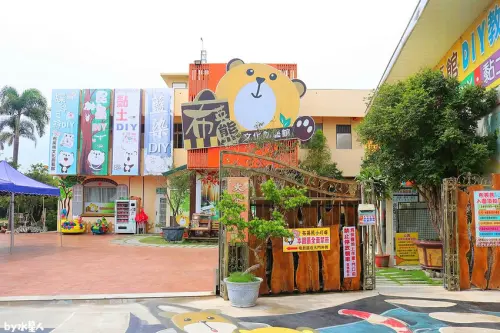 遠遠地,就看到6隻可愛的小熊爬著電線杆椰子樹迎接著我們,布英熊去年8月才開幕,是針車二代老闆為了傳承母親的夢想而設立的文化館。