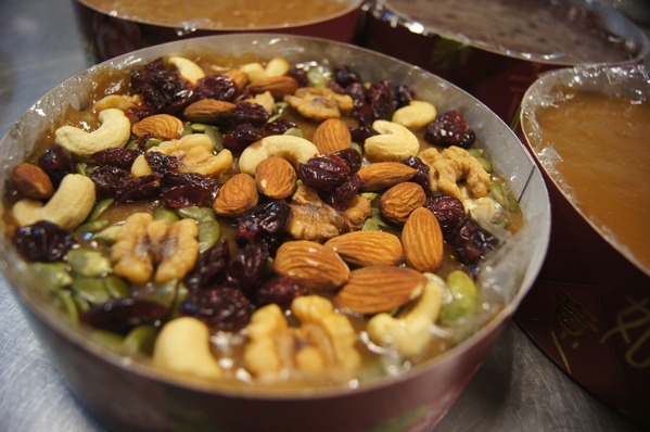 而堅果口味的年糕是原味年糕上面再鋪上一層堅果,阿綿特選低溫烘培的堅果,因此保留堅果營養,口感也比較有嚼勁,是一道很養生的健康年糕喔。