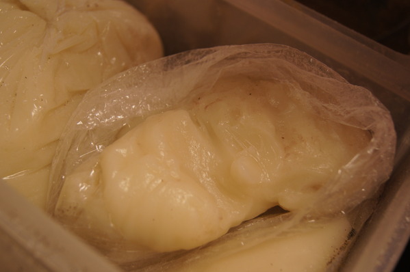 放入蒸籠的米漿也有漏網之魚,會有一些沒攪拌完全的糯米粉粒,稱為"白目仔",這時還需以人工篩選揉捏完全才能上蓋蒸煮喔。