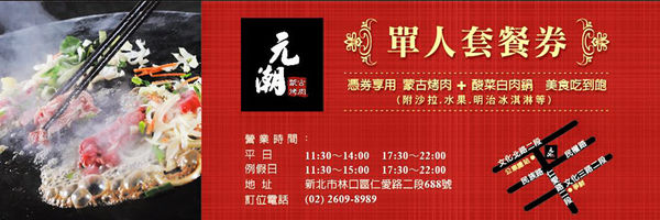 ◎元潮蒙古烤肉、酸菜白肉鍋/餐券