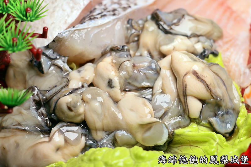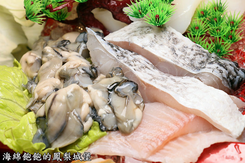 共有螃蟹、干貝、魚片、鮮蚵、扇貝、鮮蝦、魷魚及蛤蠣