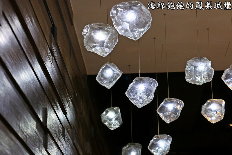 天花板的燈飾很特別,是冰塊呢!