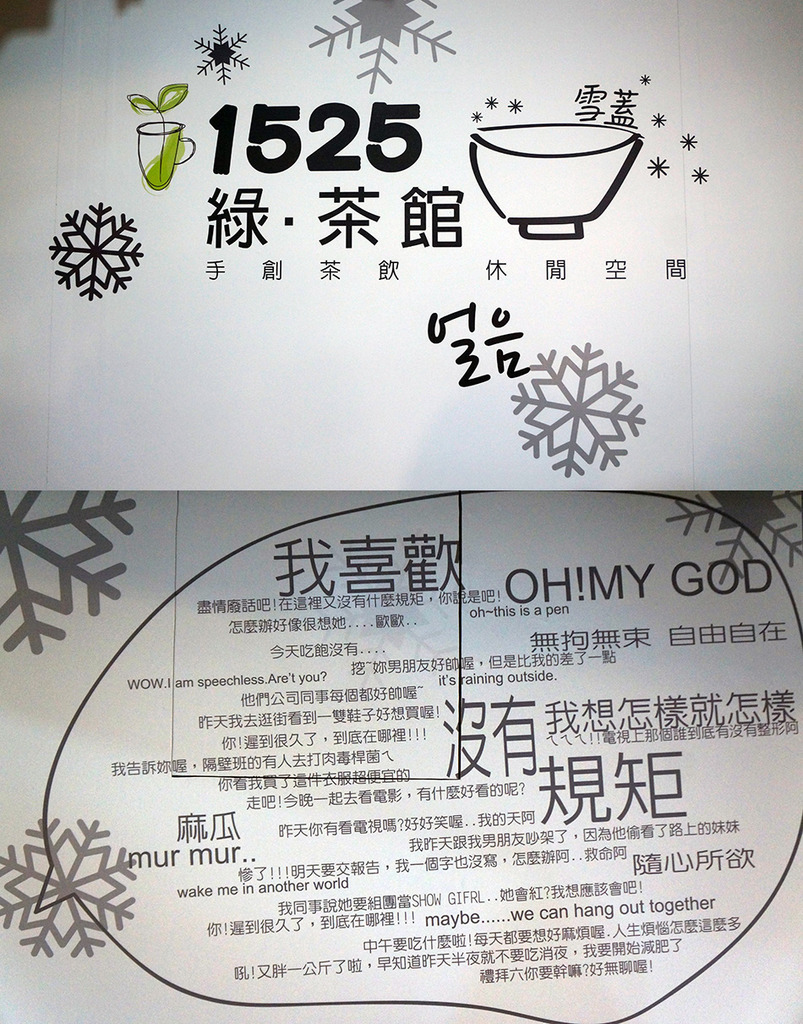 牆上的壁貼也是很潮流的字詞,運用輕鬆詼諧有趣的語氣,打造時下年輕人來這邊用餐聊天