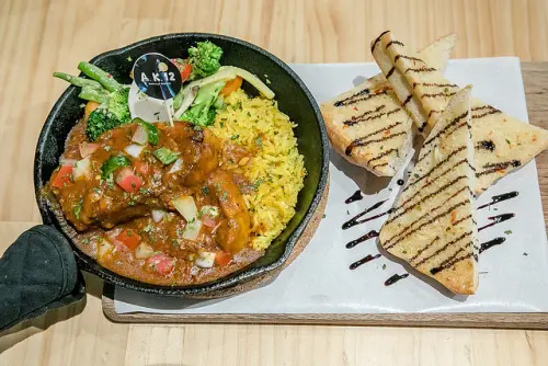 而一旁的薯條是使用帶皮馬鈴薯製作而成