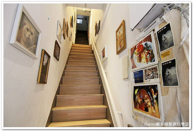 咖啡店就在二樓,走上階梯牆面就有許多攝影作品,其中有位老闆喜歡攝影剛好配合餐廳展示