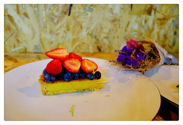 杏仁塔皮加上新鮮草莓及藍苺