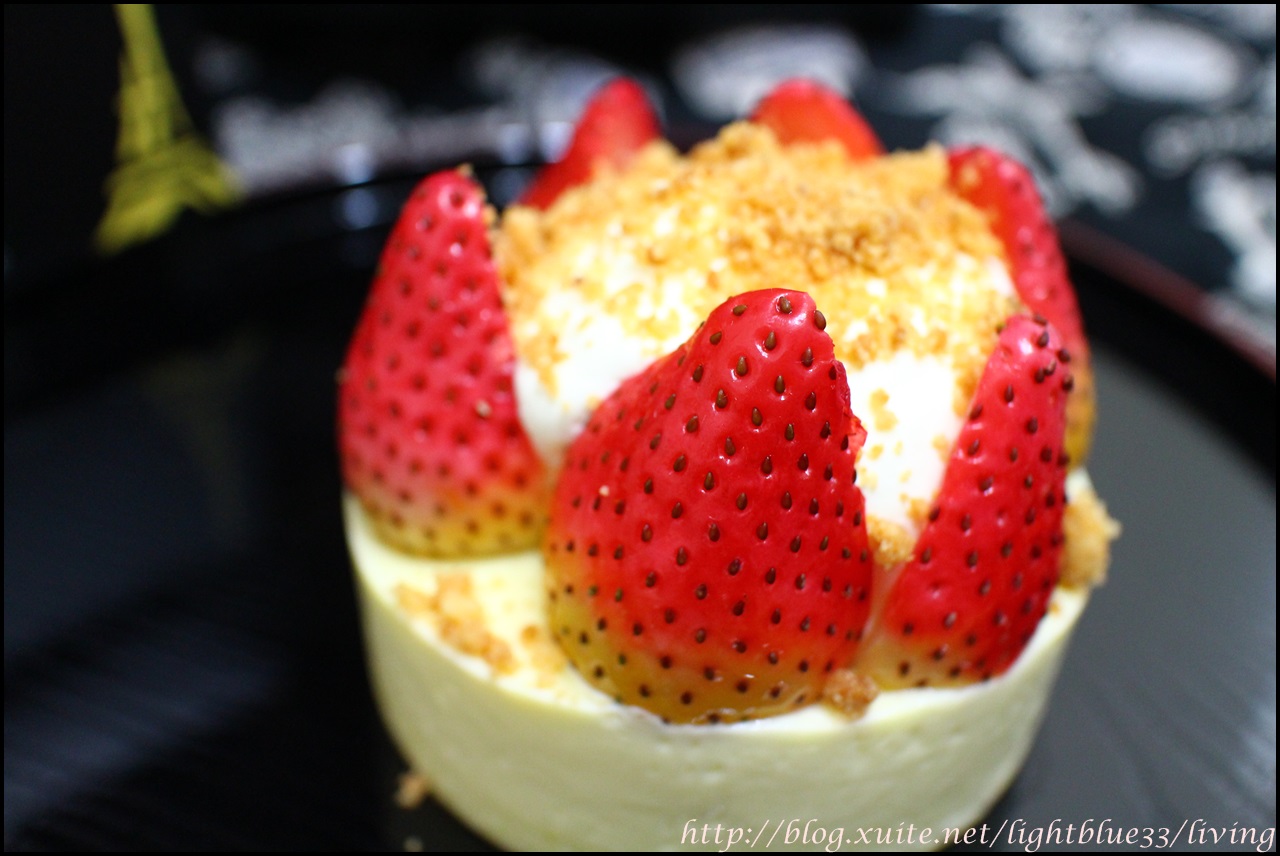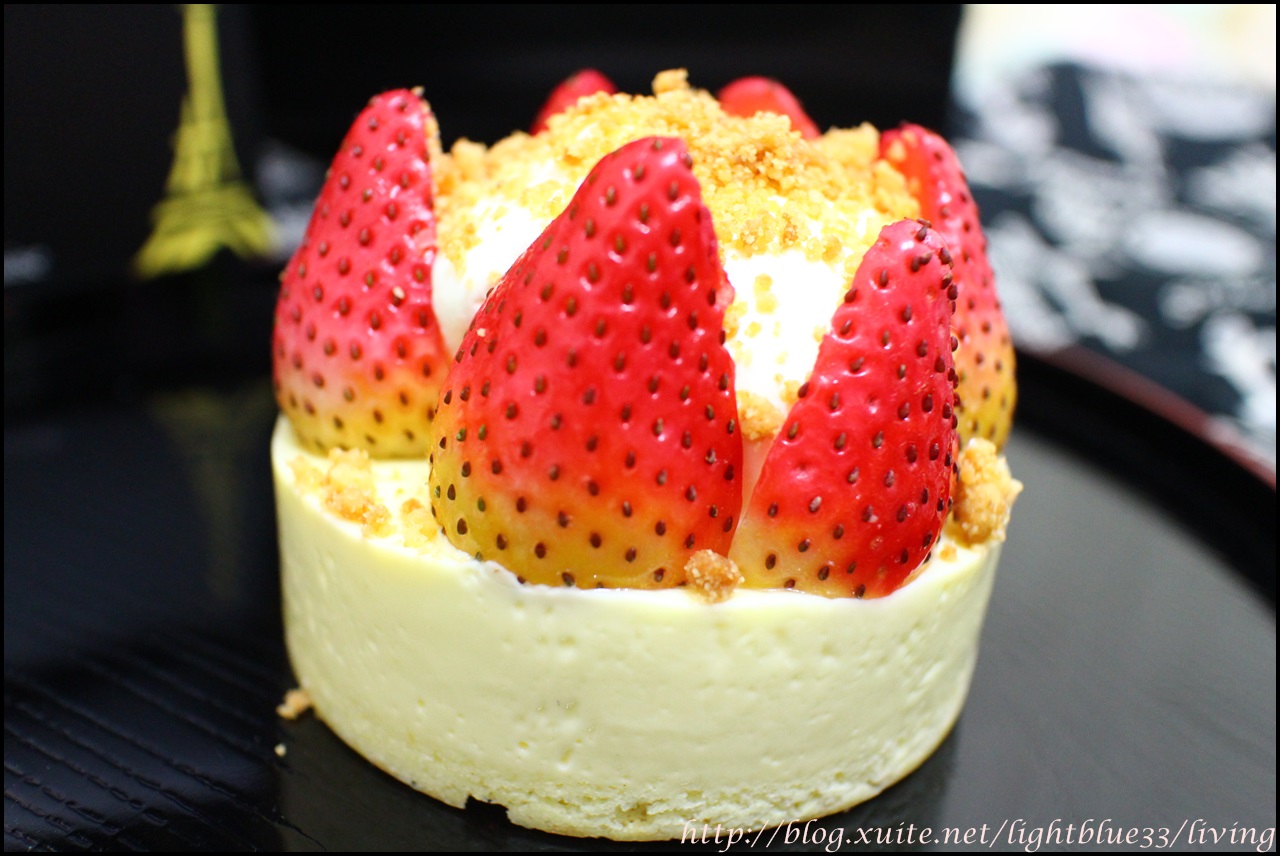 看到草莓的顏色就讓我心裡感覺不妙,果然,吃起來沒有台灣草莓的酸甜滋味,這麼大顆但是卻很澀,應該是使用進口的草莓,甚至還影響到底下蛋糕一起入口的感受,非常可惜