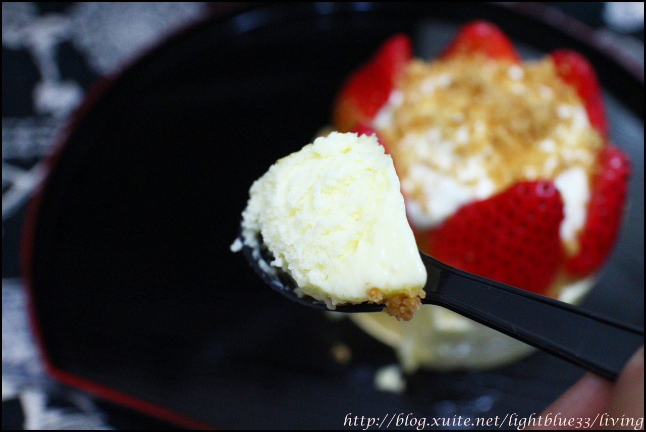 底下的起司蛋糕很香甜,我覺得單吃就很美味,草莓沒有加到分真的很可惜,鮮奶油也是香而不膩,本來回家後我想吃四分之一的,結果一不小心就吃掉半個了!