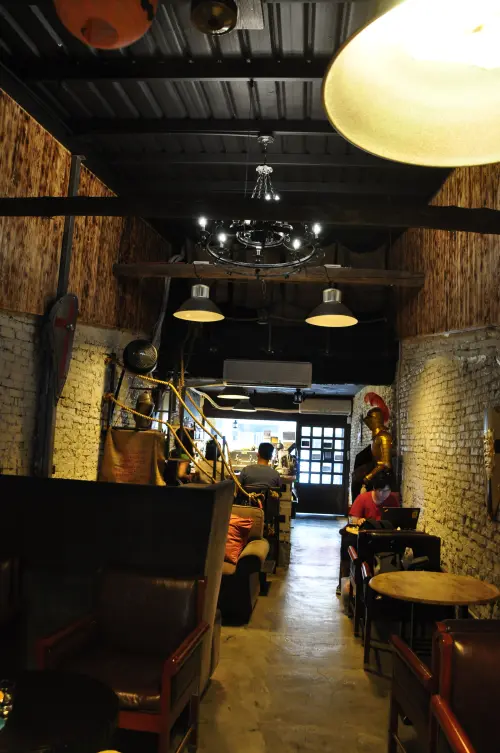 這家店的天花板有挑高,小夾層的樓中樓是不能上去的,不過這個有海盜船感的麻繩扶手梯,替店裡增加了不少特色。只是我怎麼拍就拍不好這個角度,也許要再去上個攝影課(笑)。
