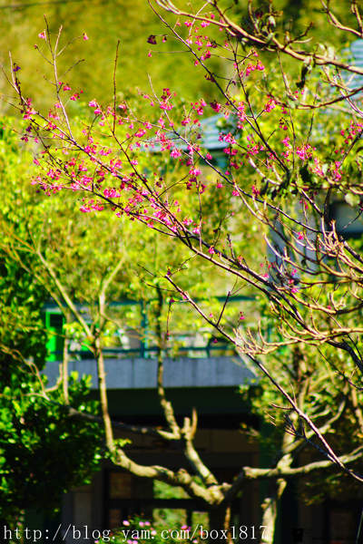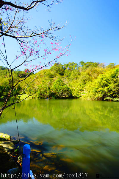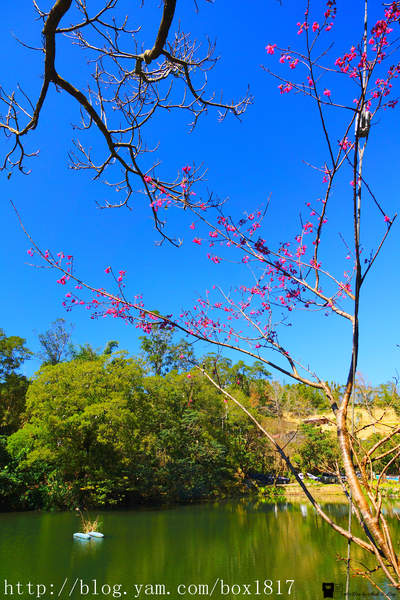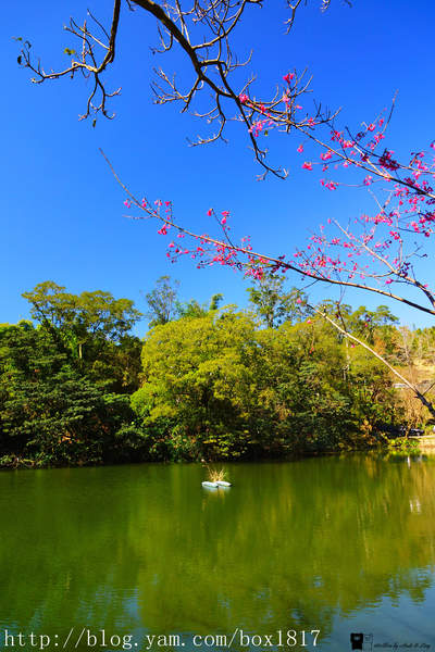 正是櫻花綻放的季節,在豆麥埤塘也可看到櫻花,