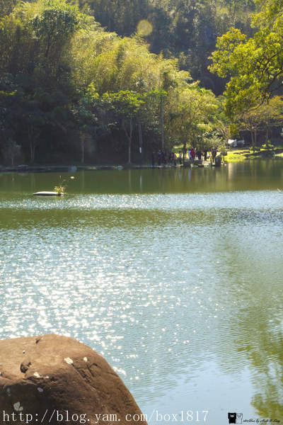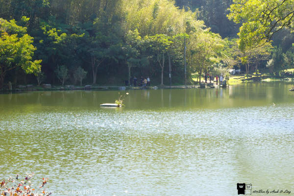 我們一群同行友人在此放慢腳步,欣賞著湖光水色,