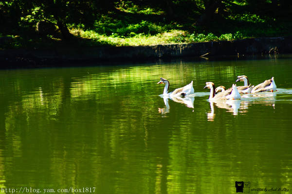 豆麥私房景點,豆麥碑塘中,清澈的湖水,小水鴨悠游著,清逸的景致令人身心鬆弛,
