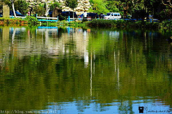 不同角度取景,埤塘的湖水顏色也不一樣,