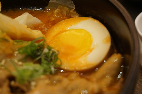 滑~半熟的黃金蛋,溫潤的滋味更增添這道湯麵的豐富性。