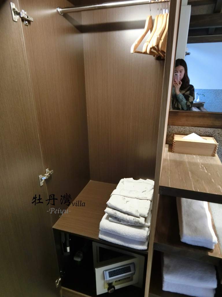浴室內也特別設計了一個衣櫥,浴袍及浴巾都放在這裡