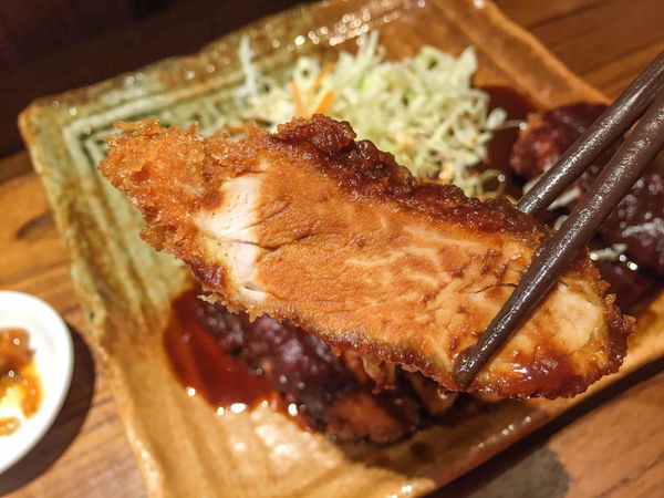 豬排是在上桌後才由店員淋上味噌醬汁,量非常地充沛。名古屋豬排用的味噌是愛知縣在地出產