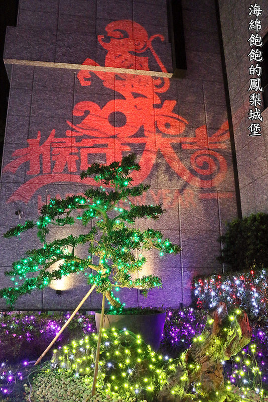 內湖公民會館上的牆面以投影燈投出猴年大吉圖樣