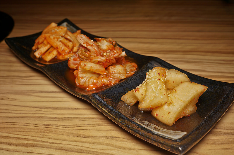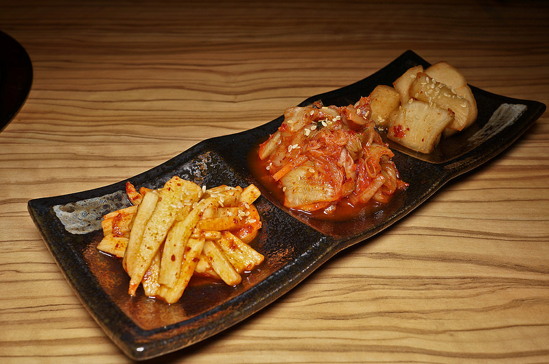 從左到右分別是山藥泡菜,韓國泡菜,蘿蔔泡菜