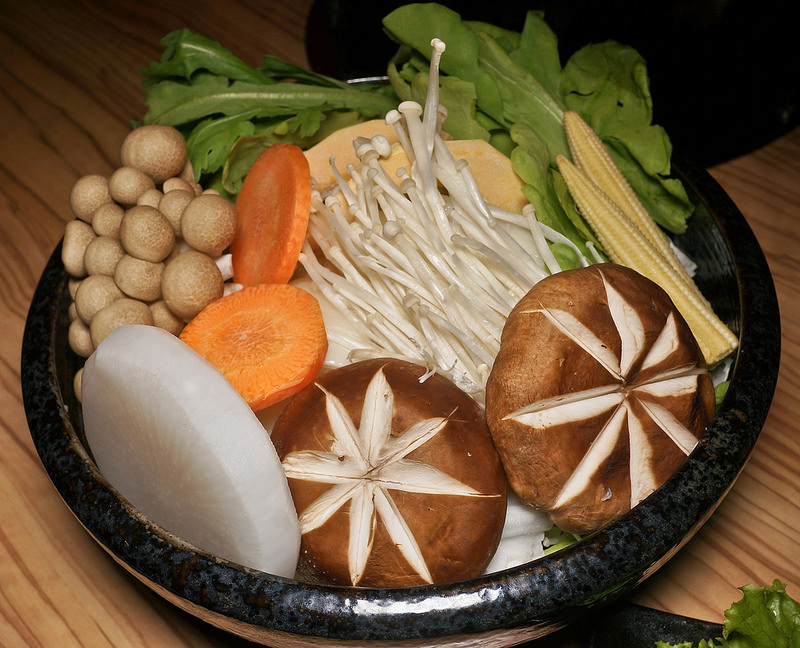 菜盤十分豐盛, 青菜部份配合日本習慣, 用日本茼蒿