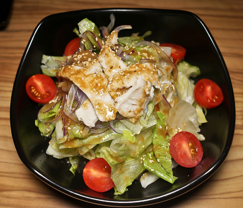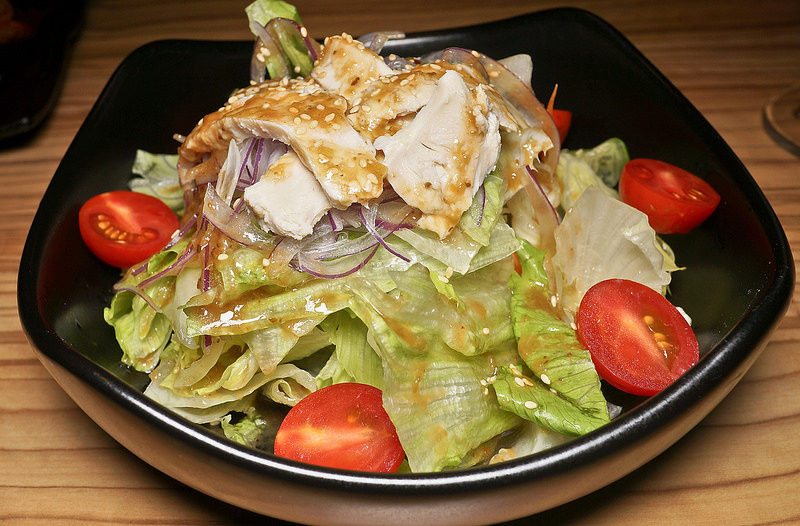 這天應該就是雞肉大餐了, 爽口的生菜配上和風醬汁, 最上面配上一些煮過的雞胸肉