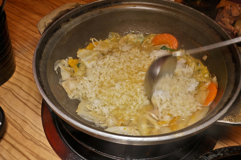 接下來就是放飯煮雜炊, 這邊的作法與其他看過的店稍稍不同