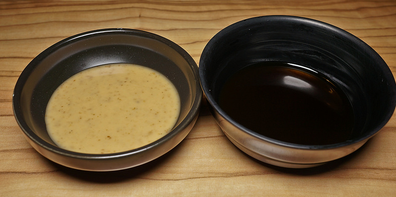 醬汁是日本進口的胡麻醬, 柚子醬油( 台灣柚子與日本醬油 )