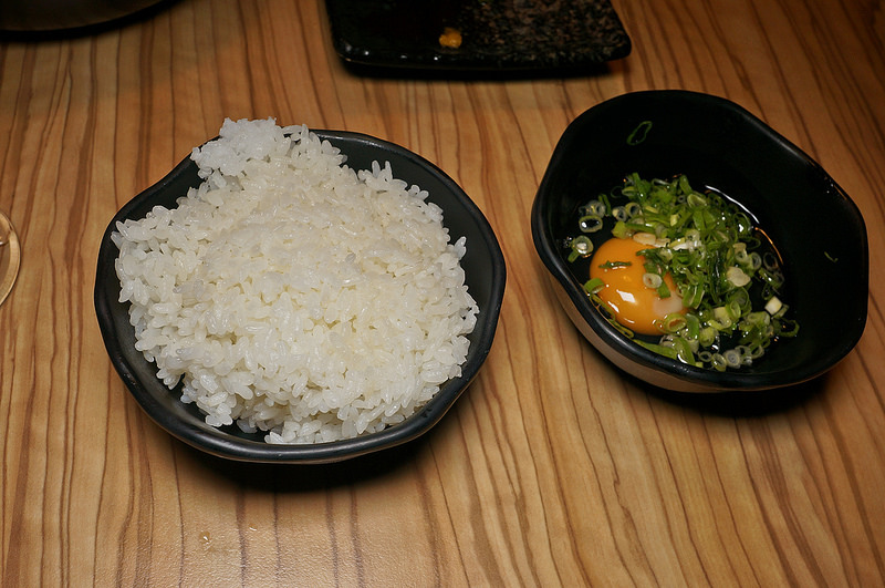 然後,這是生雞蛋丼飯.......不對, 它是要煮雜炊的飯和蛋