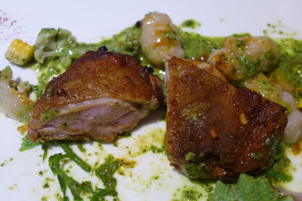 偶有還沾附到一點青醬汁更好,雞腿和青醬就是哥倆好哩