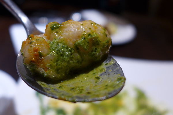 像這樣吸附上鮮綠的青醬醬汁,一口吃下剛剛好,很有嚼勁!!!!