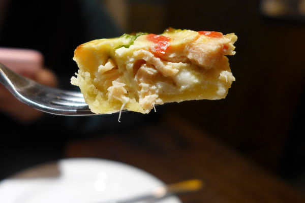鮭魚亂中有序地出沒在整塊鹹派中,派皮又酥又香,沒有過厚的澱粉感~
