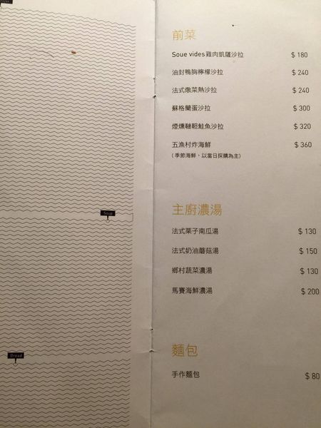 除了套餐也有各項單點可以選擇:前菜、濃湯和麵包。