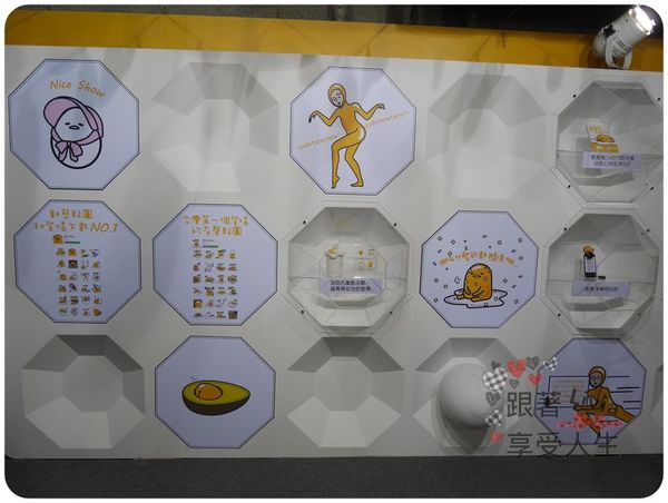 一進去先跟門口的蛋黃哥合拍個照,打聲招呼,接著走走看看牆壁的左右兩側,