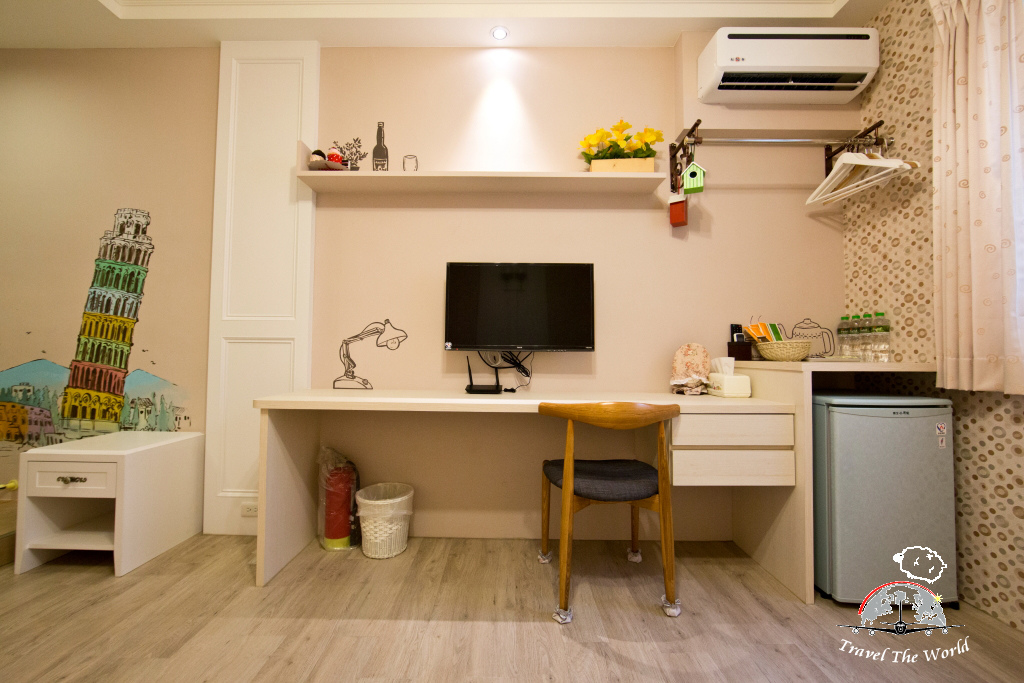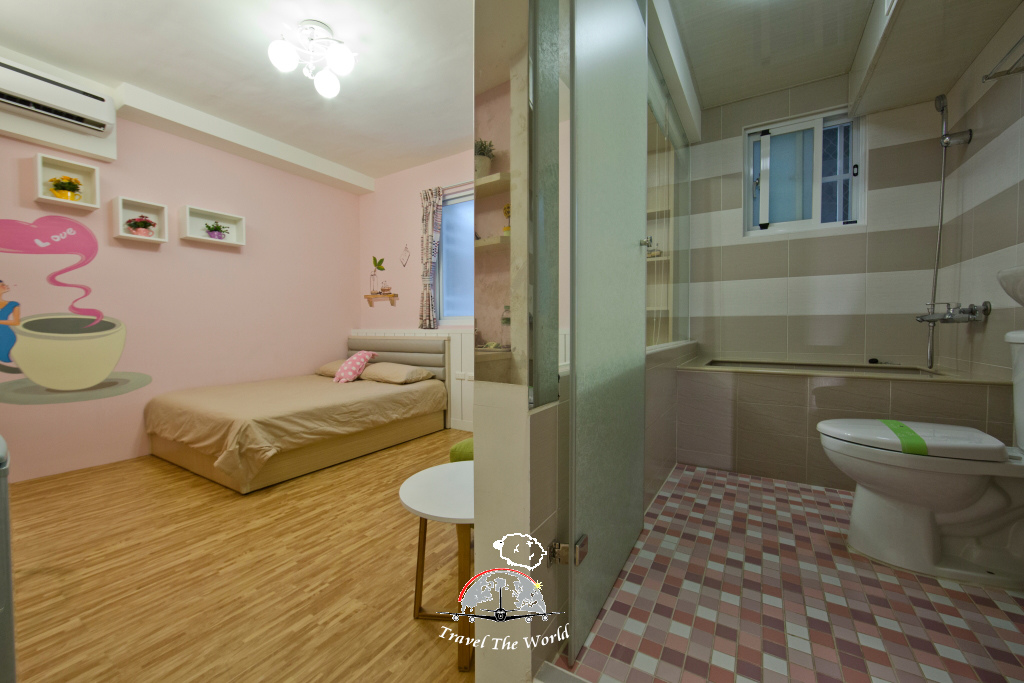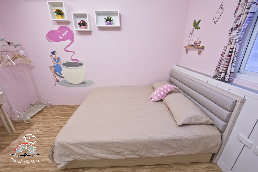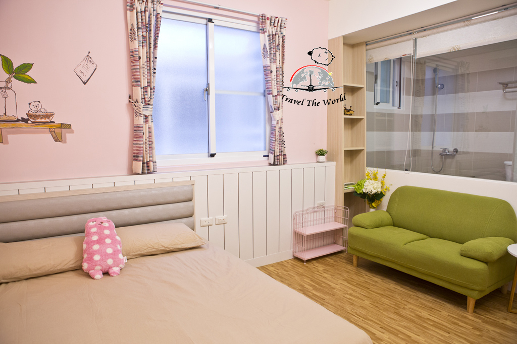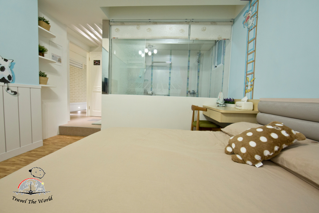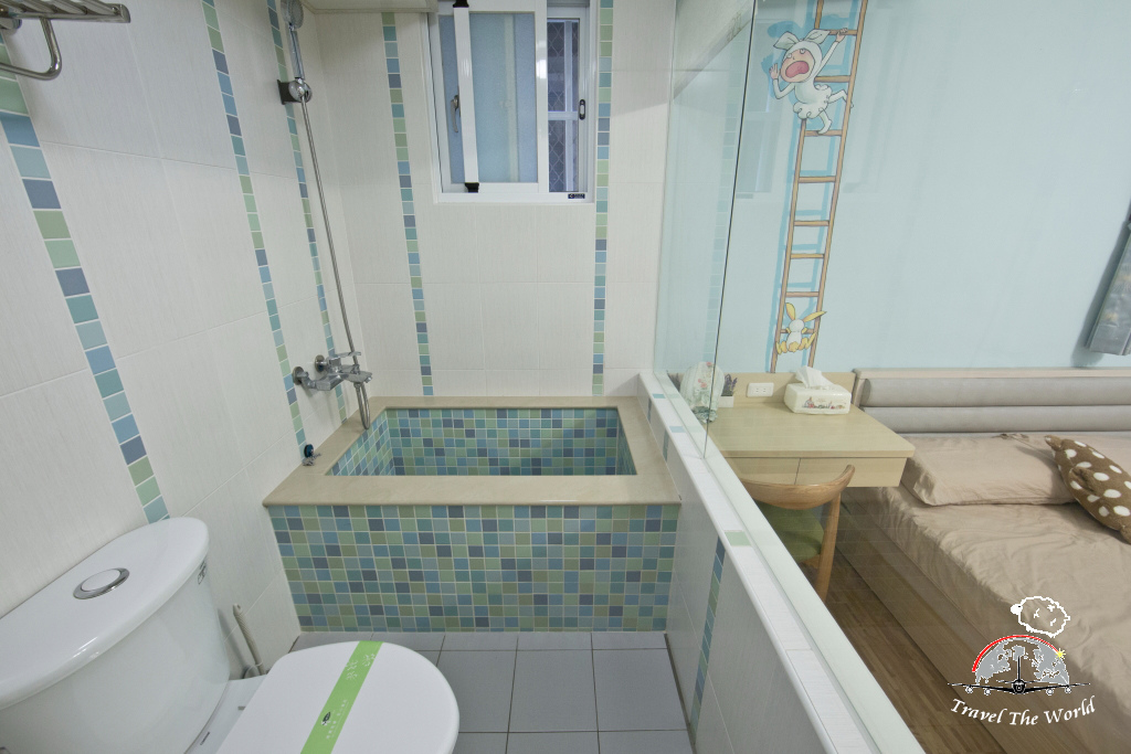 房內是可愛俏皮幾米手繪牆,浴室是景觀玻璃湯屋。