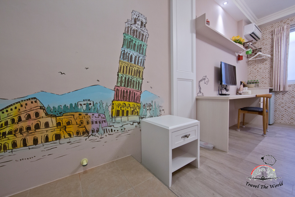 牆壁上手繪羅馬圓形競技場、比薩斜塔。