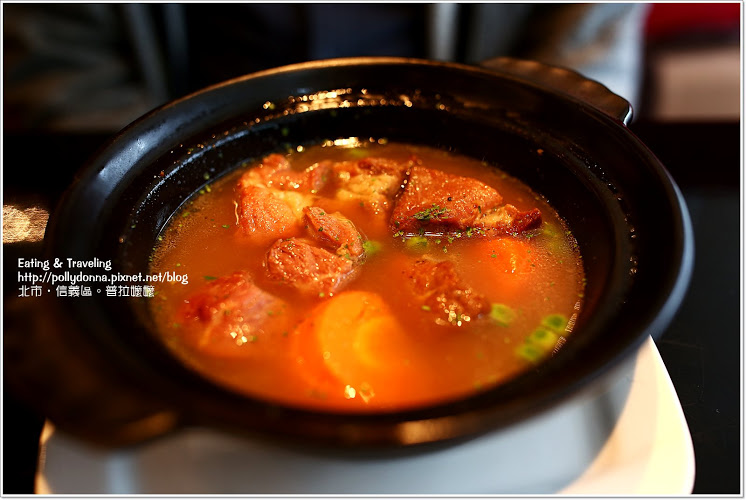 單點的蔬菜豬肉燉鍋,非常小一鍋,一直以為燉鍋料理應該是一道菜,不是這樣像湯一樣,湯汁太多,整個食材都泡在湯裡,湯汁又不夠濃稠到可以適合沾麵包吃,味道上則中規中矩,豬肉算有軟嫩,但帶有一點酒味,份量真的不多。(NT.340)
