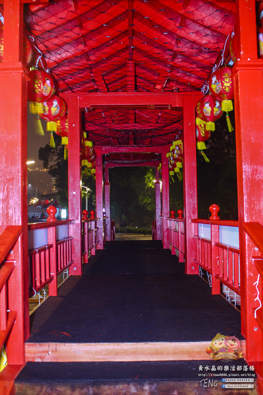 護佑賜福橋搭配生態池中的燈光水蓮造景,的確是美不剩收。