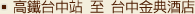 1。由高鐵台中站大廳層5、6號出口手扶梯至1樓客運轉運站。
