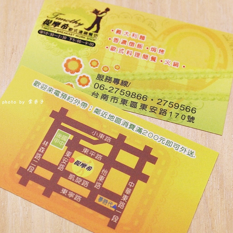 在東安路這有家"提摩希歐式餐坊"餐點非常好吃,份量又足,