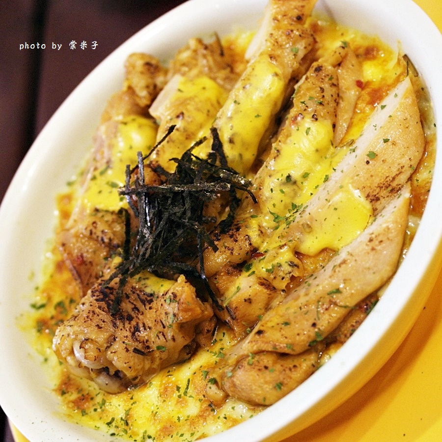 重點是除了焗烤的起司外,老闆竟還在雞腿排上又放了一層不同的起司,