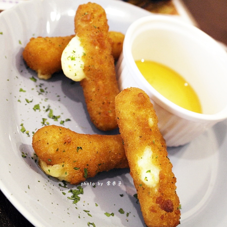更特別的是他們家的乳酪棒不是搭配蜂蜜芥茉醬也不是番茄醬,