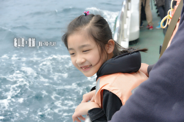 多多似乎不是因為海豚而興奮,而是因為站在船邊可以直接接觸到海水而感到新鮮!((嗯~~~鹹鹹的海水,好吃!))