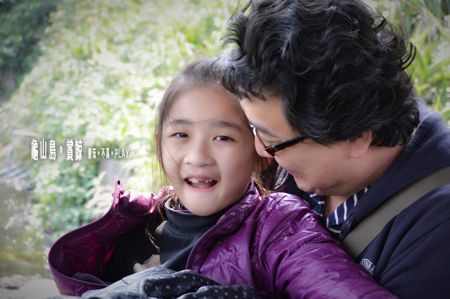 稍做休息的父女檔