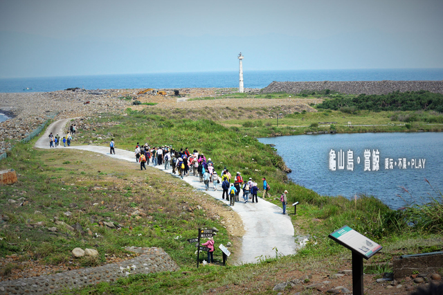 一登上龜山島,就看到佇立在島上斗大的立牌:島孤人不孤