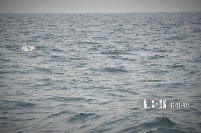在這種艱難的環境下,實在很難掌握鏡頭,索性我採取亂槍打鳥的方式,終於讓我拍到一張有海豚的照片了((看得出來在哪裏嗎??))