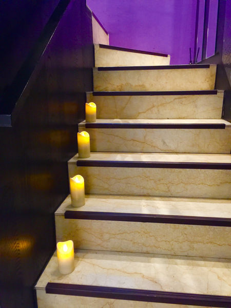 下樓的階梯也擺上了純白蠟燭,增添了異國風味,歡迎賓客們走進一場美麗的饗宴