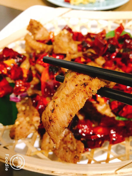 米小摳本身就是松阪豬的愛好者,熱愛這種肉質特殊的脆感,這道松阪豬加了大量的辣椒與孜然口味較重!辣度較高,非常下飯!