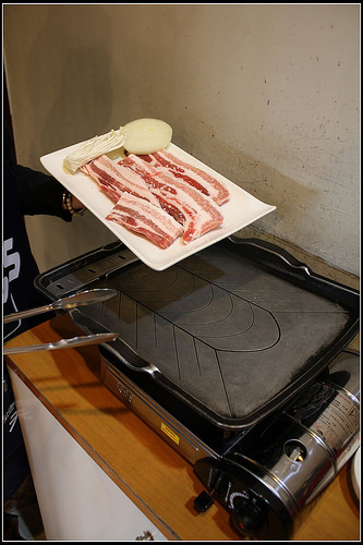 我們點了烤五花肉(NT600),本來是採桌邊服務的,不過如果人數過多,烤肉會在後方工作台進行,烤好以後再整理上桌。
