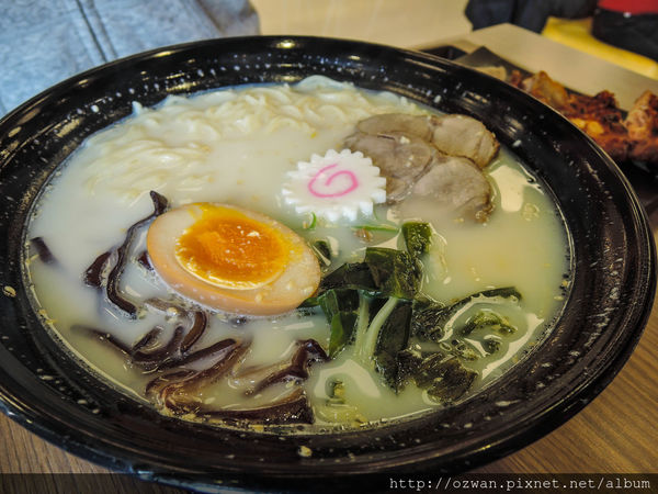 豚骨拉麵有半顆糖心蛋、木耳、海帶、魚板、2塊叉燒,
